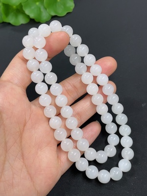 H39546516 Hetian Jade Bead Necklace, approx. 7.8mm, total weight approx. 44.4g