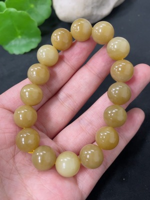 H32704374 Hetian Jade Bracelet, Approx. 11.9mm Beads, Total Weight Approx. 45.8g