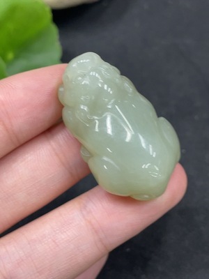 H21395736 Hetian Jade Handheld Carving "Fortune-Bringing Frogs" with Non-Hetian Jade Beads, Total Weight Approx. 64g (Incl. Cord)