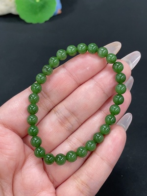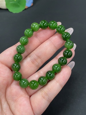 H38482003 Hetian Jade Green Jade Bracelet, approx. 9.6mm, total weight approx. 31.2g, with non-Hetian Jade beads, non-gold