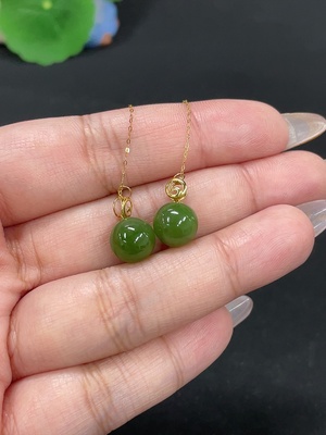 H39562230 Hetian Jade Inlaid Earrings, Approx. 9.1mm, Total Weight Approx. 3g, 74% Gold Content