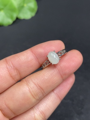 H36270171 Hetian Jade Inlaid Adjustable Ring Non-Gold Inlaid Total Weight About 2g