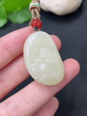 H37461575 Hetian Jade Pendant - Buddha with Non-Hetian Jade Beads, Total Weight (including rope): 13.9g