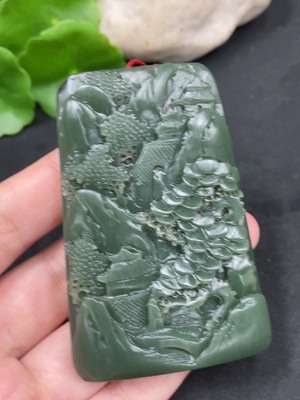 H36338720 Hetian Jade Pendant - Landscape Plaque with Non-Hetian Jade Beads, Total Weight Approx. 83g (Including Cord)