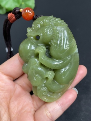 H36205626 Hetian Jade Handheld Carving Auspicious Beast