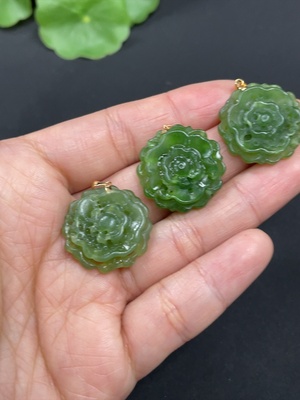 H37450994 Hetian Jade Jasper Pendant - Blooming Prosperity with 18K Gold Clasp, Total Weight Approx. 9.2g