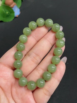 H33944476 Hetian Jade Bracelet, Approx. 9.7mm Beads, Total Weight About 26.3g