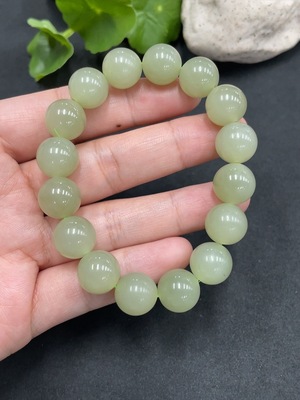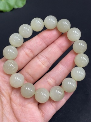 H15684941 Hetian Jade Bracelet, Approx. 11.7mm Beads, Total Weight About 40.49g