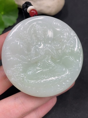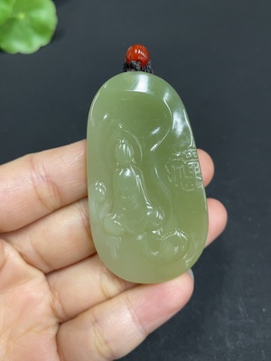 H26043639 Hetian Jade Pendant Guanyin God of Wealth Total Weight [including rope] 76.8g