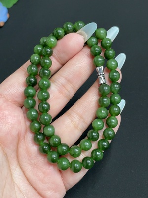 H33846191 Hetian Jade Bead Necklace, approx. 7.4mm, non-gold-inlaid, total weight approx. 41.5g