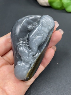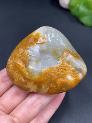 H20309864 Hetian Jade Handheld Carving - Landscape, Undetermined Skin Color Origin, Contains Other Mineral Components, Total Weight Approx. 110.2g