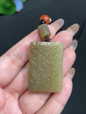 H19087139 Hetian Jade Pendant - Blessing Before Eyes - Total Weight Approx. 48.5g - Undetermined Skin Color Origin - Contains Other Natural Mineral Components
