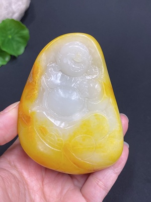 H21391694 Hetian Jade Handheld Piece - Buddha Figure, Undetermined Skin Color Origin, Contains Other Mineral Components, Total Weight Approximately 198.5g