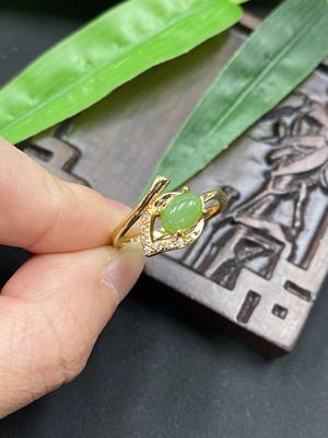 H1052472 Hetian jade inlaid ring total weight 1.8 with grain adjustable