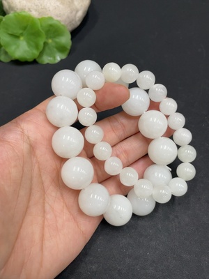 H29430108 Hetian Jade Bead Necklace, Approx. 9.5mm, Non-Hetian Jade Beads Included, Total Weight Approx. 153.4g