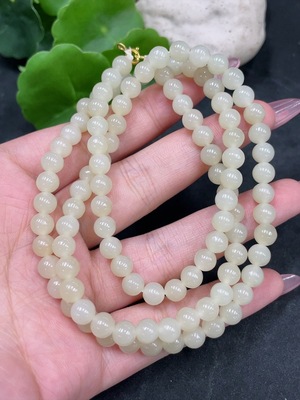 H33841591 Hetian Jade Bead Necklace, approx. 6mm, total weight about 36.6g, non-gold