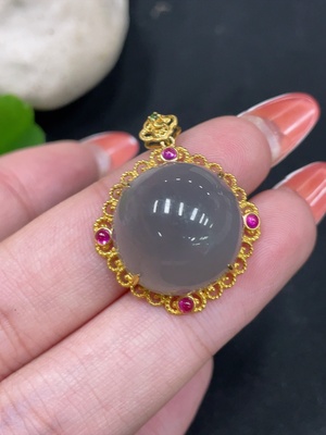 H34062076 Hetian Jade Cabochon Pendant with 18k Gold Setting, Total Weight Approx. 5.6g