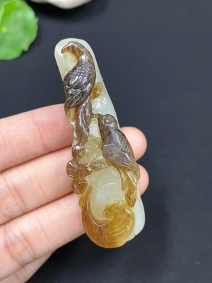 H25854373 Hetian Jade Pendant Happy Bird on the Branch Total Weight About 20.6g