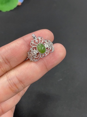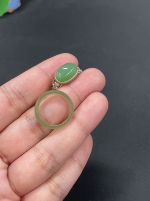 H38505953 Hetian Jade Ring with Inlaid Ring, Total Weight Approx. 6.5g, Non-Gold