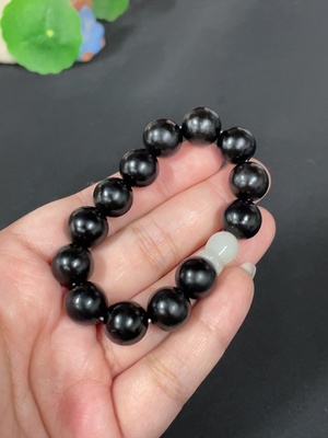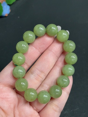 H37427162 Hetian Jade Bracelet, approx. 11.9mm beads, total weight approx. 35.2g, undetermined color origin, contains other mineral components