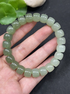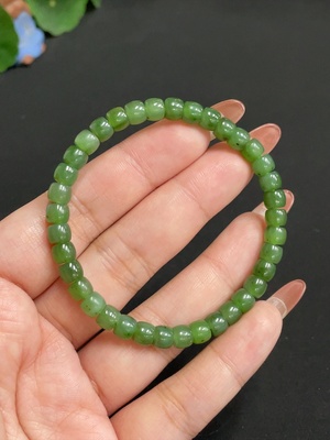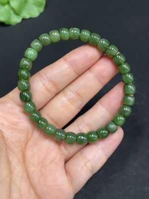 H35110642 Hetian Jade Green Jade Bead Bracelet, Approx. 6.6mm, Total Weight About 15.2g