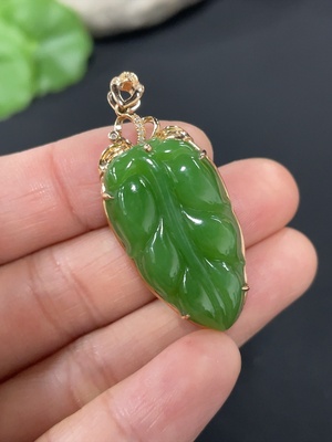 H37411533 Hetian Jade Jasper Inlaid Leaf 18K Gold Total Weight Approx. 5g Diamond Accents