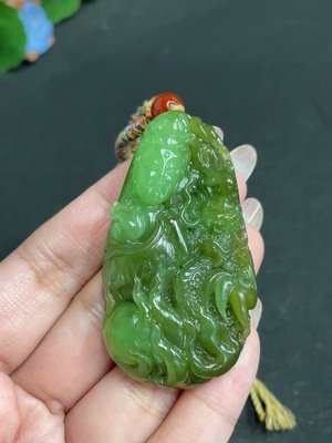 H33925754 Hetian Jade Pendant Manjusri Bodhisattva Total Weight Approx. (with rope) 53.9g