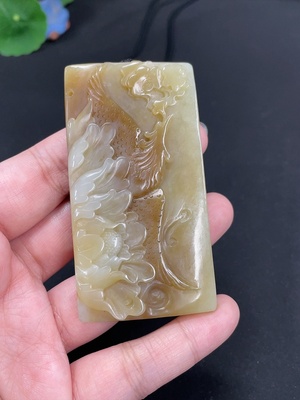 H37402193 Hetian Jade Jasper Flowering Wealth Hand Plate