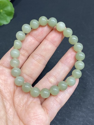 H35150314 Hetian Jade Bracelet, Approx. 7.6 mm Beads, Total Weight Approx. 19.1g, Non-Gold
