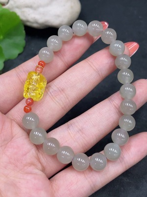 H34979796 Hetian Jade Bracelet Approx.7.6mm Total Weight 16.4g With South Red Agate Amber (Coated) Non-Gold