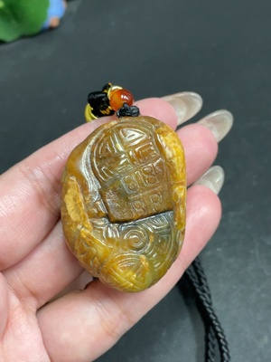 H30550494 Hetian Jade Handheld Carving Antique-style Piece with Other Mineral Components Undetermined Skin Color Origin Total Weight Approx. [Including String] 50.9g