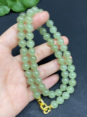 H30518156 Hetian Jade Bead Necklace, Approx. 7.8mm, Non-Gold Inlaid, Total Weight Approx. 45.1g