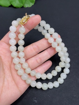H35109845 Hetian Jade Bead Necklace, approx. 8mm, non-gold inlaid, total weight approx. 49.2g