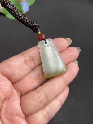 H36288361 Hetian Jade Pendant, Antique-style Plaque, Total Weight (including rope): approx. 9.4g, Undetermined Skin Color Origin