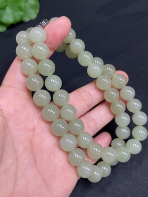 H36342796 Hetian Jade Bead Necklace, Approx. 9.9mm, Total Weight Approx. 74.8g