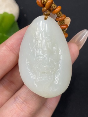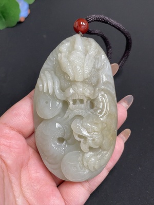 H32766930 Hetian Jade Handheld Ornament - Dragon (Total Weight: approx. 193.1g [including rope])