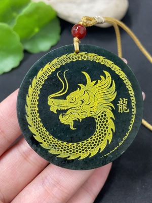 H38482252 Hetian Jade Pendant Dragon Plaque with Non-Hetian Jade Beads Total Weight Approx. 29.9g (Including Cord)
