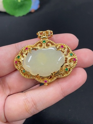 H38505673 Hetian Jade Inlaid Pendant Total Weight Approx.14.5g Non-Gold