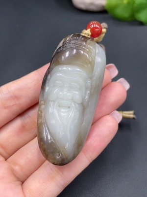 H29326176 Hetian Jade Pendant God of Wealth Undetermined Skin Color Cause Total Weight About 27.5g