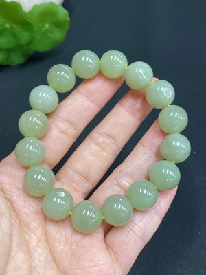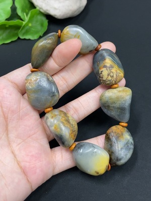 H29430169 Hetian Jade Bracelet, Undetermined Skin Color Origin, Contains Other Mineral Components, Matching Beads Not Hetian Jade, Total Weight Approximately 83.6g