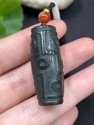H36297053 Hetian Jade Pendant Dzi Bead Total Weight (with rope) Approx. 18.5g