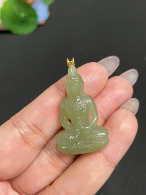 H33930528 Hetian Jade Inlaid Pendant Guanyin Total Weight About 7.9g 18k