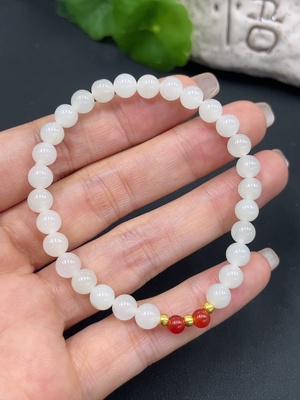 H18994566 Hetian Jade Bracelet, Approx. 5.8mm, Total Weight Approx. 9.3g, Beads Not Hetian Jade, Gold Beads 99% Gold Content