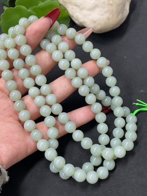 H38482477 Hetian Jade Bead Necklace, Approx. 7.8mm, Total Weight Approx. 82.7g