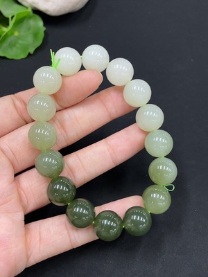 H37407833 Hetian Jade Bracelet, approx. 11.7mm beads, total weight approx. 53.9g, non-Hetian Jade accessory beads