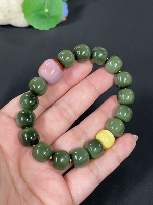 H32781310 Hetian Jade Bracelet, Contains Other Mineral Components, Undetermined Skin Color Origin, Beads Not Hetian Jade, Total Weight Approximately 89.7g