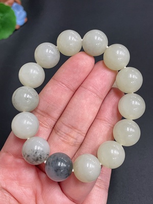 H24828903 Hetian Jade Bracelet, Undetermined Skin Color Origin, Non-Hetian Jade Beads, Total Weight Approx. 79.2g
