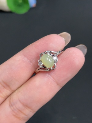 H36237007 Hetian Jade inlaid adjustable ring, total weight approx. 2.3g, non-gold