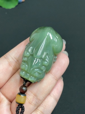 H16718030 Hetian Jade Handheld Ornament - Auspicious Beast, Undetermined Skin Color Origin, Total Weight Approx. (Including Rope) 75.1g