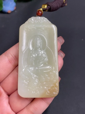 H24734864 Hetian Jade Pendant Guanyin with Undetermined Skin Color Origin, Total Weight Approximately 8.7g